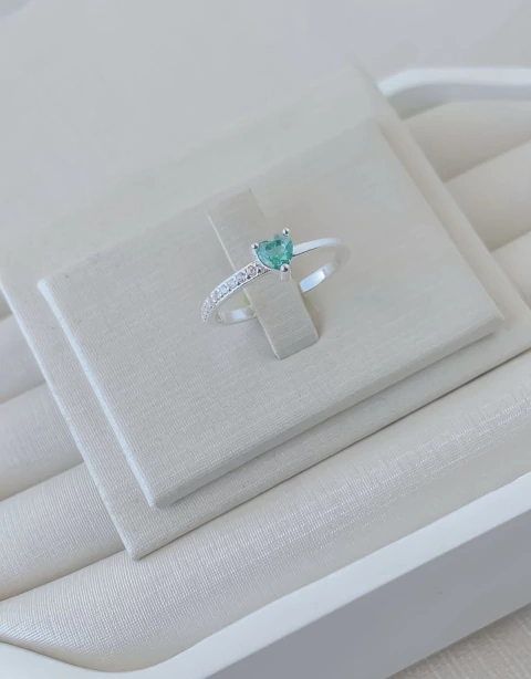 Anel Solitário Coração Zircônia Turmalina Prata 925 Importada