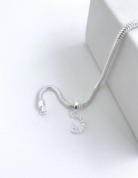 Encante-se com a delicadeza e o brilho da Lua Cravejada em Prata 925! Este berloque pingente é o acessório perfeito para adicionar um toque de charme e sofisticação à sua pulseira favorita.