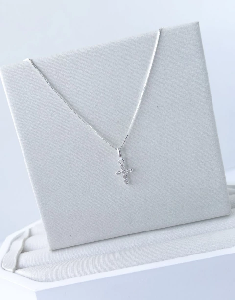Colar Crucifixo Delicado Cravejado com Zircônias - Prata 925 - 45cm