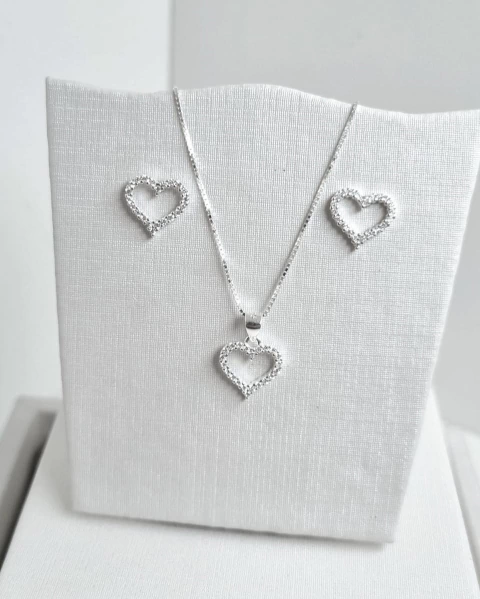 Conjunto Importado Coração Cravejado Delicado Micro Zircônias Cristais Prata 925