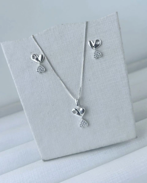 Encante-se com a delicadeza e o charme do Conjunto Pingente Cravejado Coração Delicado em Prata 925, uma peça feita para realçar sua beleza com sofisticação e leveza.